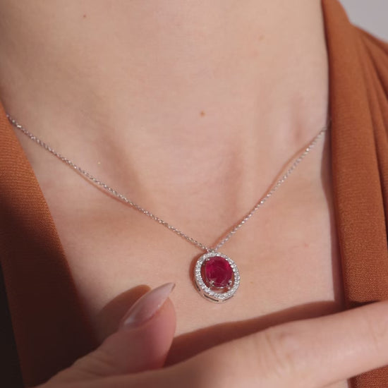 The Floravessa Ruby Necklace radiates timeless elegance, showcasing a vivid ruby centerpiece set within a beautifully crafted floral-inspired design. Its refined detailing and luxurious finish create a graceful, sophisticated statement—perfect for enhancing any special occasion or elevated look.