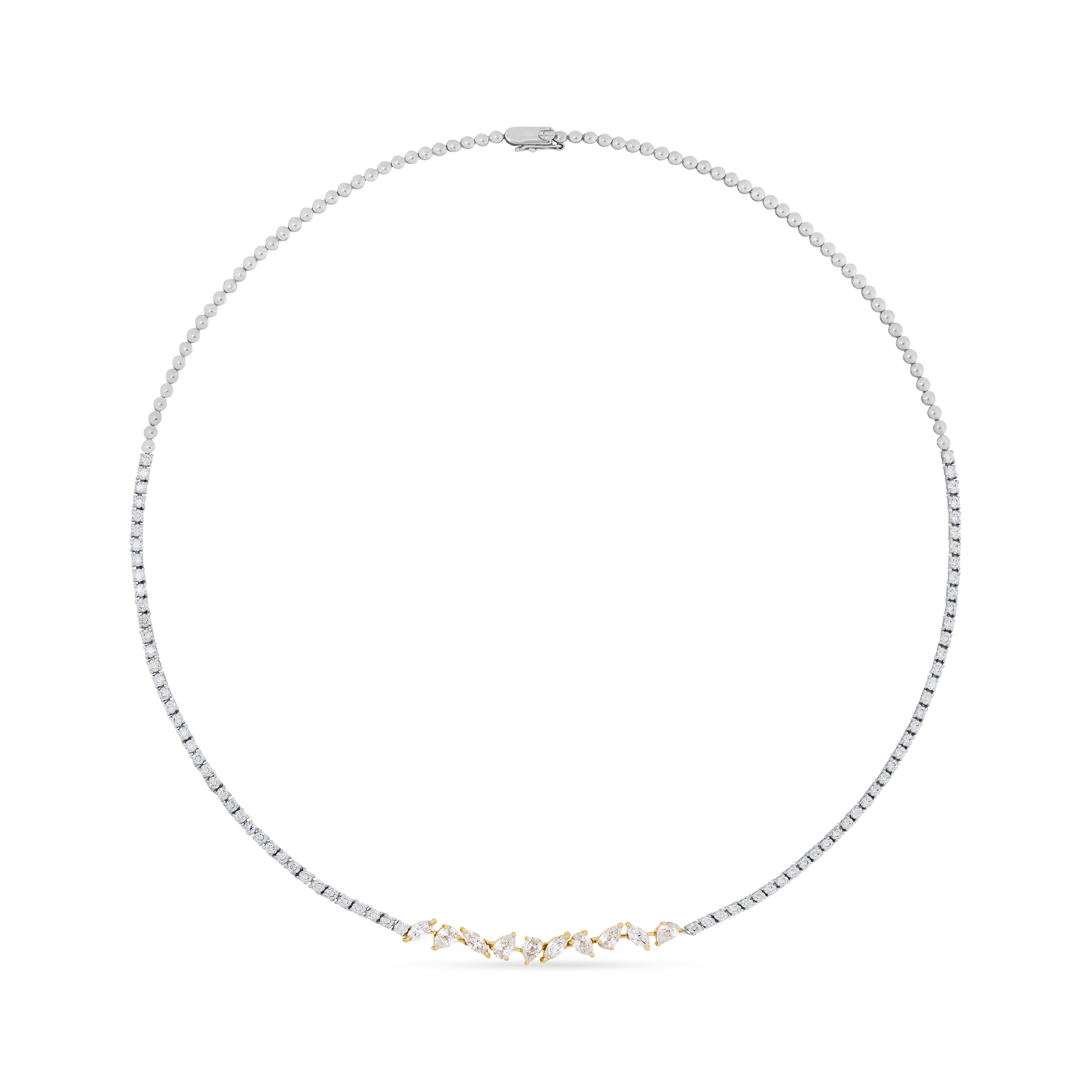 The Aurelia Marquise Vertice White Gold Necklace is a captivating blend of elegance and modern sophistication. Featuring exquisitely set marquise-cut stones in polished white gold, the necklace captures light beautifully, creating a radiant and graceful display around the neckline. Its refined design balances contemporary style with timeless charm, making it perfect for special occasions or everyday elegance.