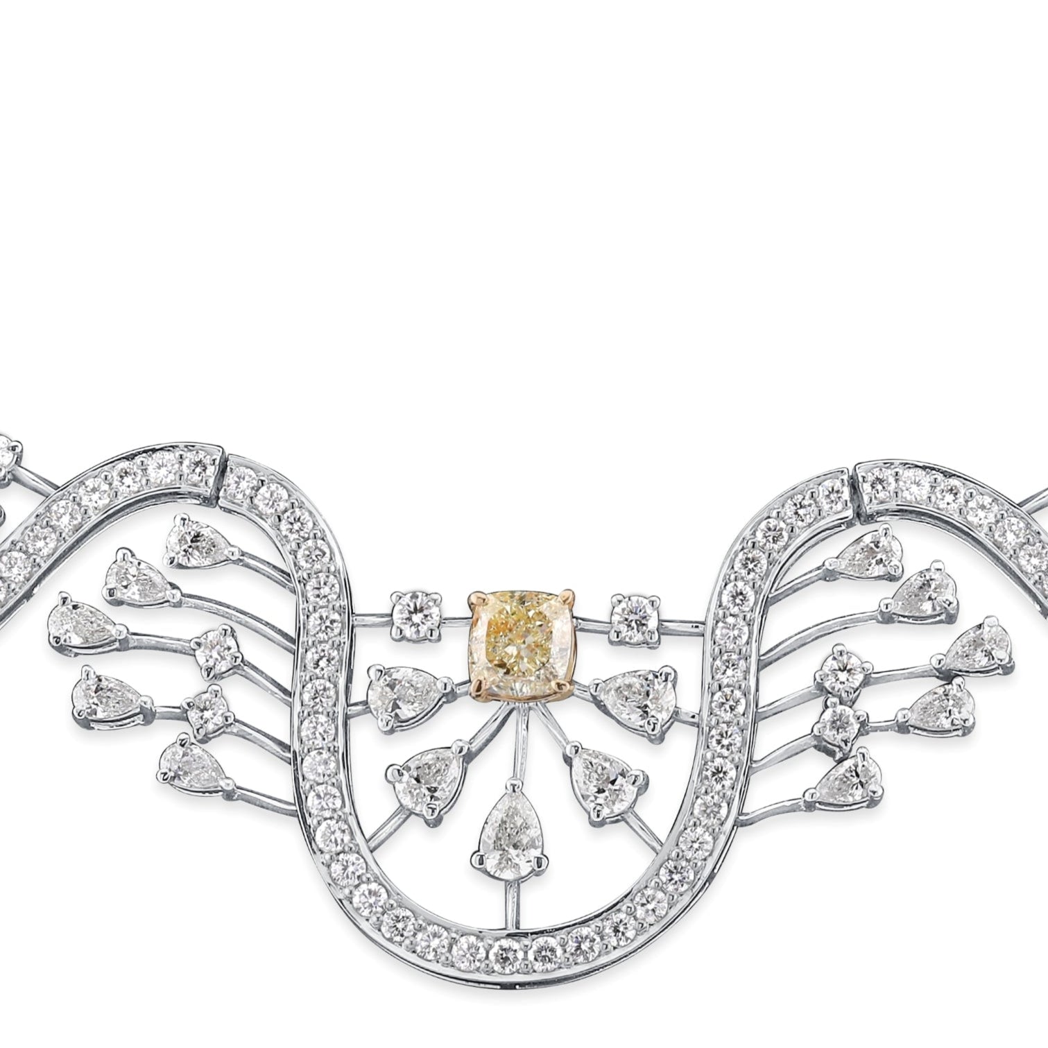 The Elviora White Gold Necklace embodies understated luxury, crafted in radiant white gold with a design that flows gracefully around the neckline. Its refined elegance and timeless silhouette make it a versatile jewel — perfect for elevating everyday style or completing a sophisticated evening look.