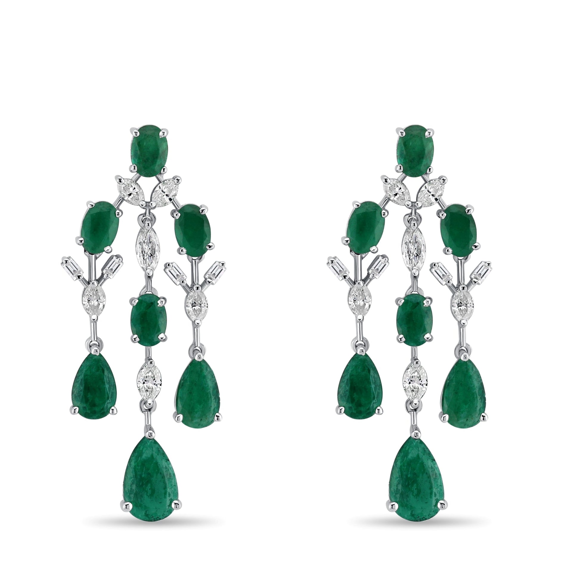 The Orivelle Emerald White Gold Earring radiates elegant sophistication, crafted in polished white gold and accented with the rich, vibrant green of emeralds. Its graceful design blends classic refinement with modern charm, making it a versatile jewel for both everyday elegance and special occasions.
