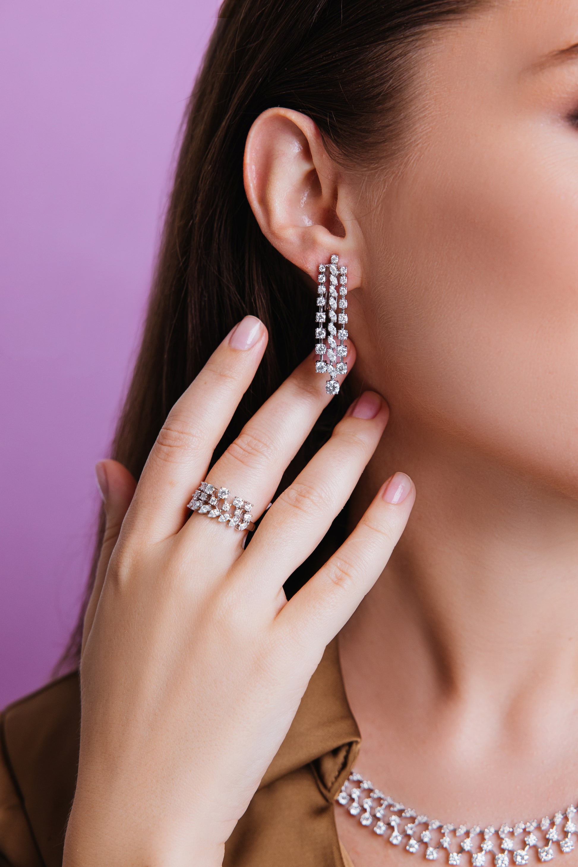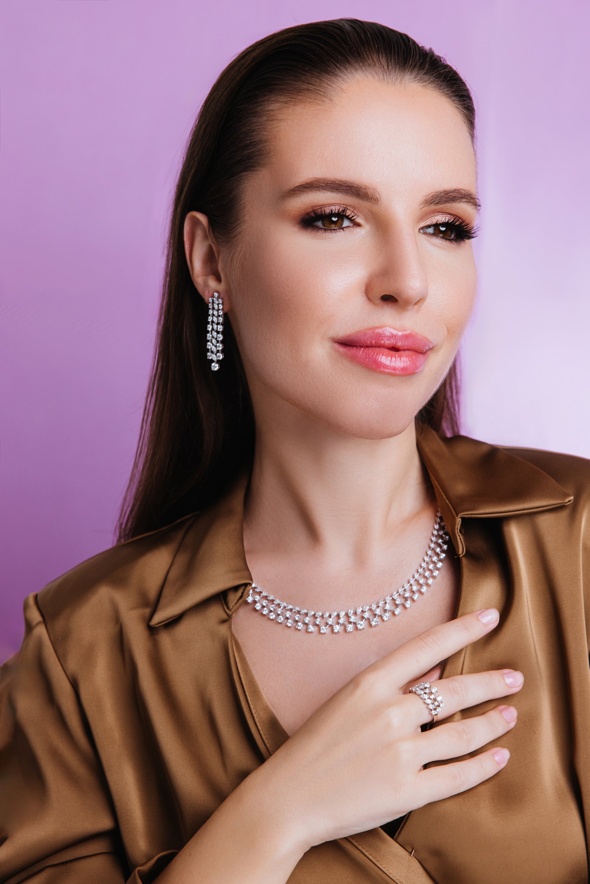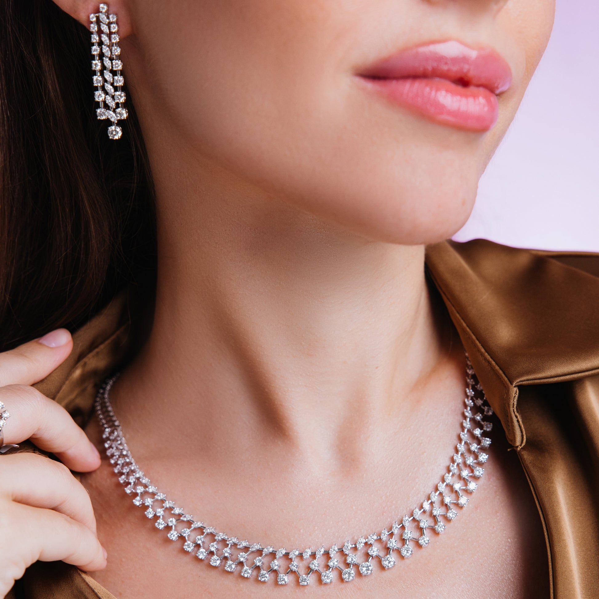 Elevate your elegance with this exquisite jewelry set, masterfully crafted in luxurious white gold. Featuring a harmonious blend of marquise-cut and round-cut, the design showcases timeless sophistication with a modern flair. Each stone is meticulously set to enhance brilliance and sparkle, making it the perfect choice for weddings, celebrations, or refined everyday wear.